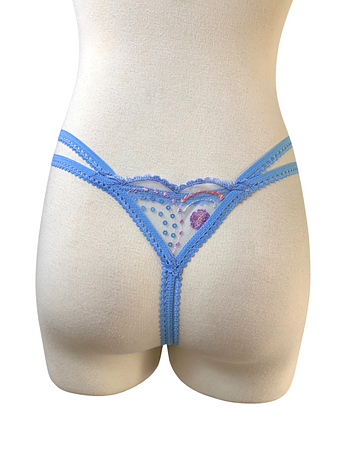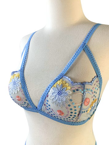 This blue Ariel set will make you feel like a mermaid! With colorful brocades for an interesting contrasts and constructed with negative spaces in the cups of the bralette.