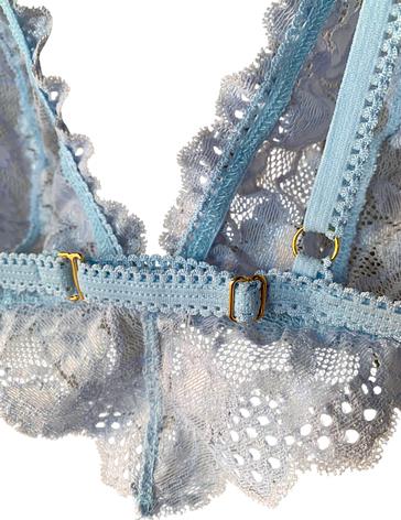 Stretchy Lace signature cut bra white adjustable straps and negative space in the back of the thong.