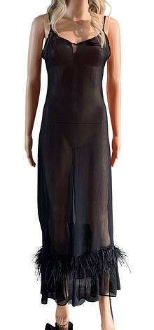 Long Slip made with a breathable chiffon black fabric. Stylish design with a flowy big ruffled on the bottom and sexy open cut on the back of the legs.