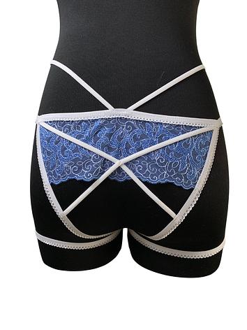Blue lace with white elastic.