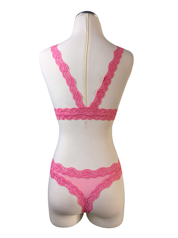 Set includes Vivid Pink Stretchy Mesh Bra & Thong, with a comfy and soft floral lace band framing the edges.
