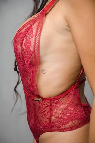 Ultra daring with a low-cut front, constructed with a carmesí lace and mesh, for a luxurious, tempting and feminine look.