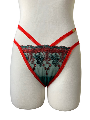 This Christmas Attire with our signature cut, is the perfect gift to surprise Bae. Constructed with green and red lace perfect for the festivities!