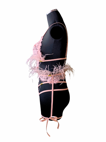 Turn up the heat with our Flamingo Garter Set, a dreamy combination of softness and confidence. Designed for the bold romantic, this set blends delicate blush lace with luxurious feather details, creating a statement piece that flirts with both elegance and playfulness.