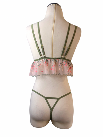 Bra is constructed various designed elastic olive bands and ruffles under the bust to enhance your romantic and sassy side.