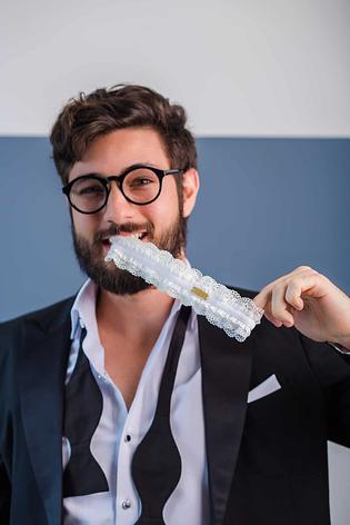 Garter is constructed with floral stretchy eyelet lace and velvet elastic with Fancy Sinner Metal Label