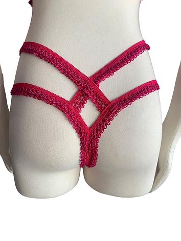 Fucsia ruffled elastics and lilac stretchy floral lace.