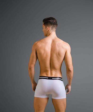 Stylish white microfiber trunk with “NO TOMORROW” slogan on elastic band.