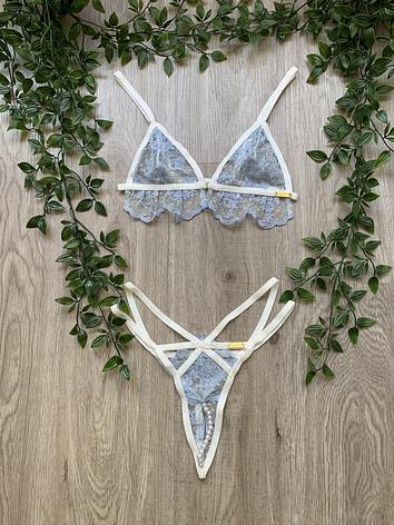 Ocean Breeze Lingerie Set, made with soft blue lace and white velvet elastic.