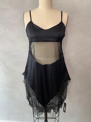 One of a kind piece. Made with silk charmeuse and Marc Jacob See Trough Chiffon, and pleated detailed soft lace.