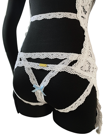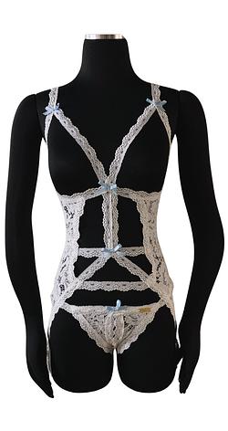 Wedding night crotchless corset set. Little bow details for something blue tradition.