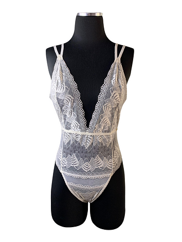Ultra daring with a low-cut front, constructed with a white floral eyelash lace and mesh, for a luxurious, tempting and feminine look.